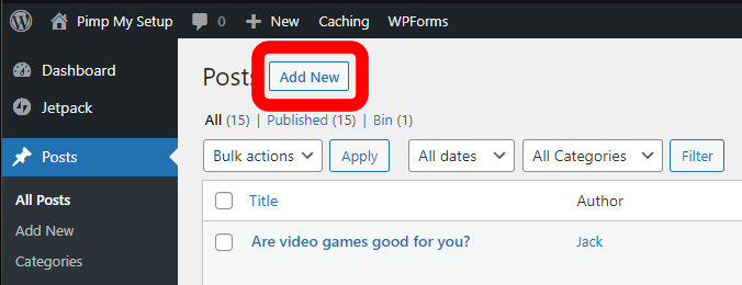 In the main section of the page, in the top left corner, click ‘Add New‘.