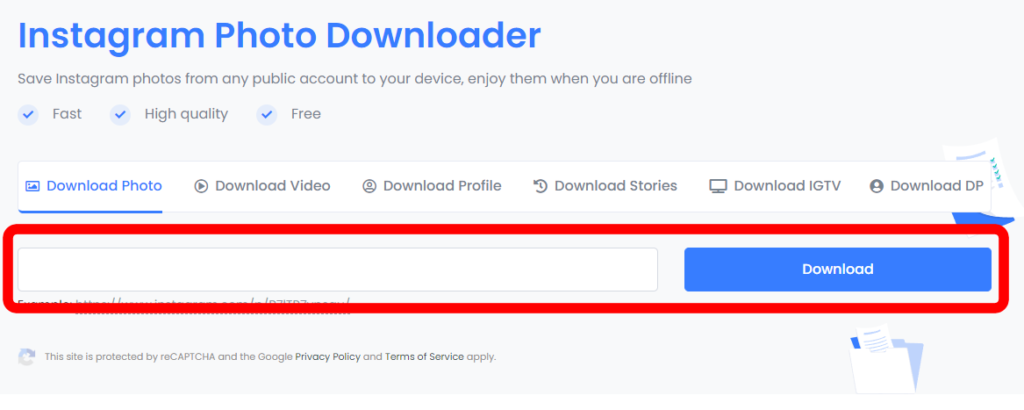 Paste the Instagram link you just copied into the box, and click the blue ‘Download‘ button on the right.
