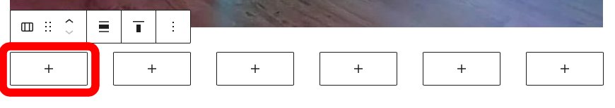Go back to the columns block underneath your photo. You will see six columns, each with a large ‘+’ button in it. Click the first ‘+’ button: