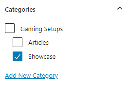 In the ‘Categories‘ section make sure only ‘Showcase‘ is ticked.