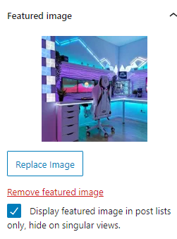 Tick the box labelled ‘Display featured image in post lists only, hide on singular views.‘