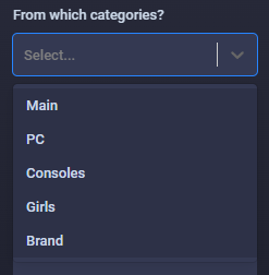 From the Categories menu, always choose Main and Brand. Ten select whether to choose ‘PC‘ or ‘Consoles‘, and whether to include ‘Girls‘, depending on the type of gaming setup shown in the image you’re posting.
